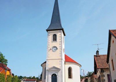 Travaux - Restauration du clocher tuiles vernissées, restauration nef, choeur et bas-côtés tuiles plates, charpente, couverture, zinguerie, restauration de l’assainissement, restauration maçonneries pierres et enduits, restauration des menuiseries extérieures.